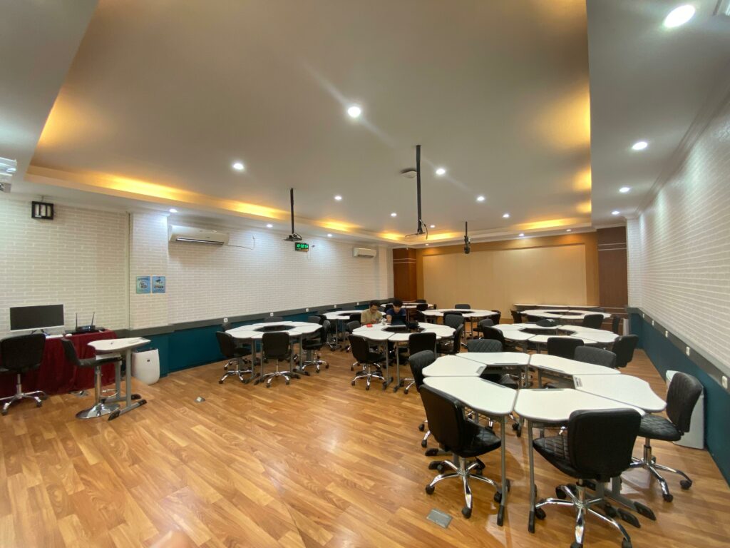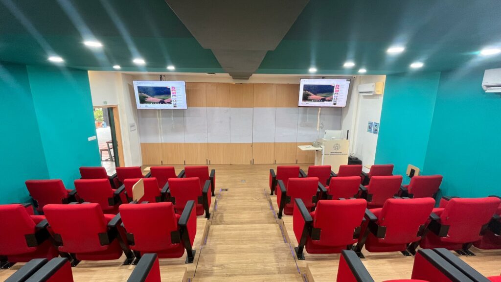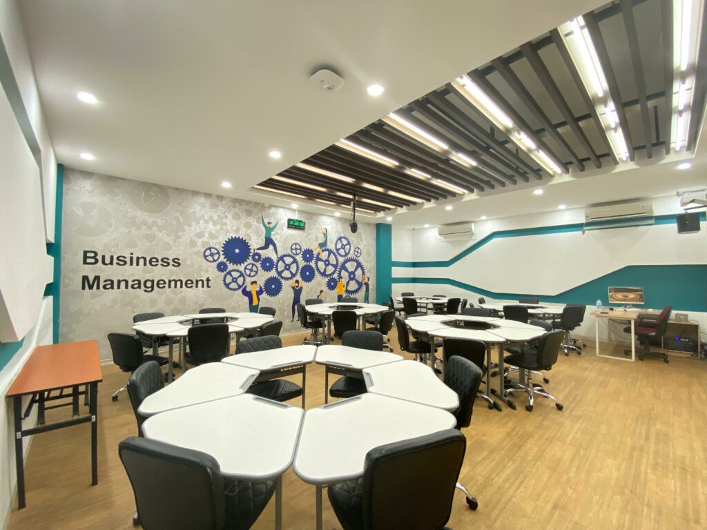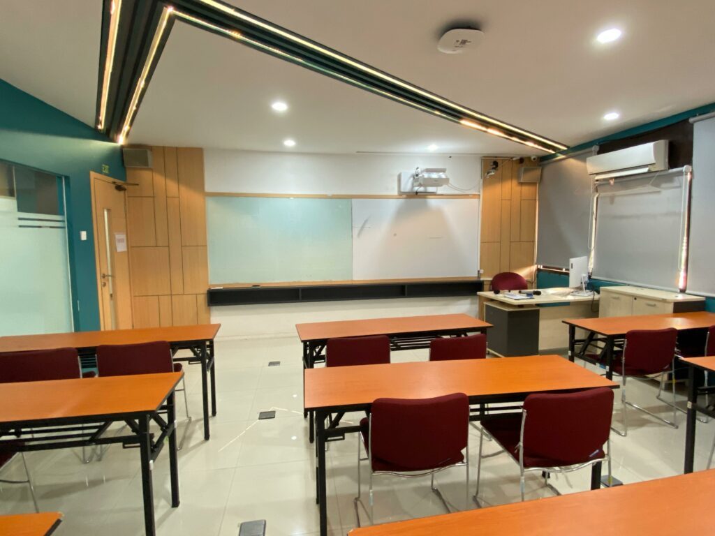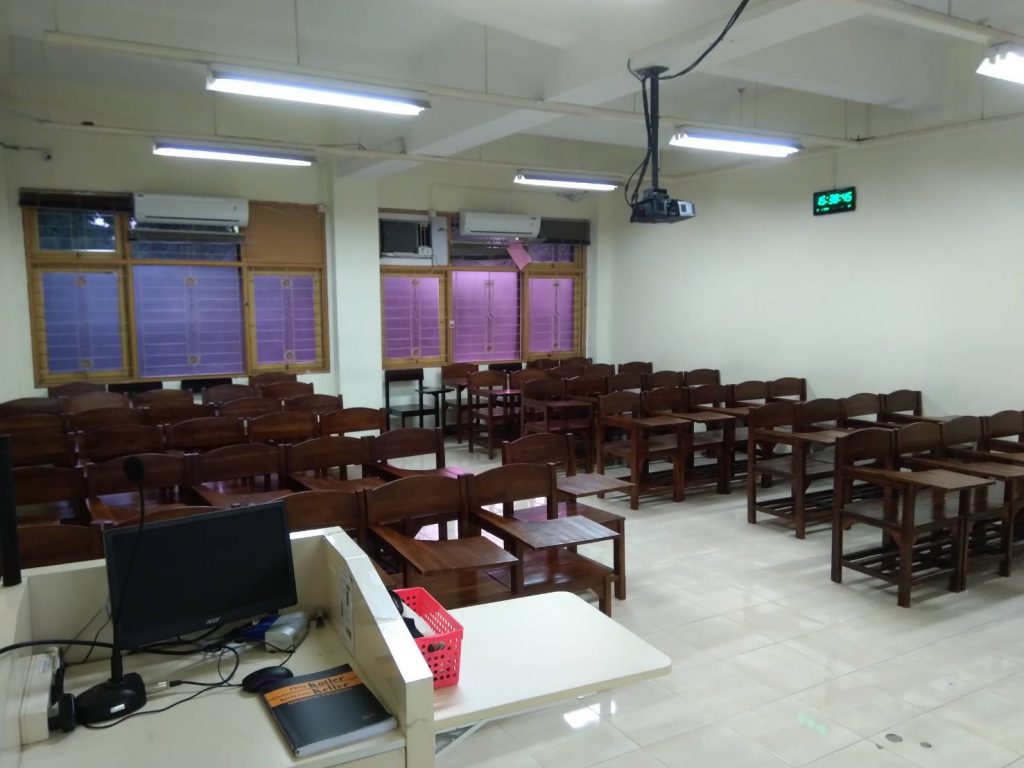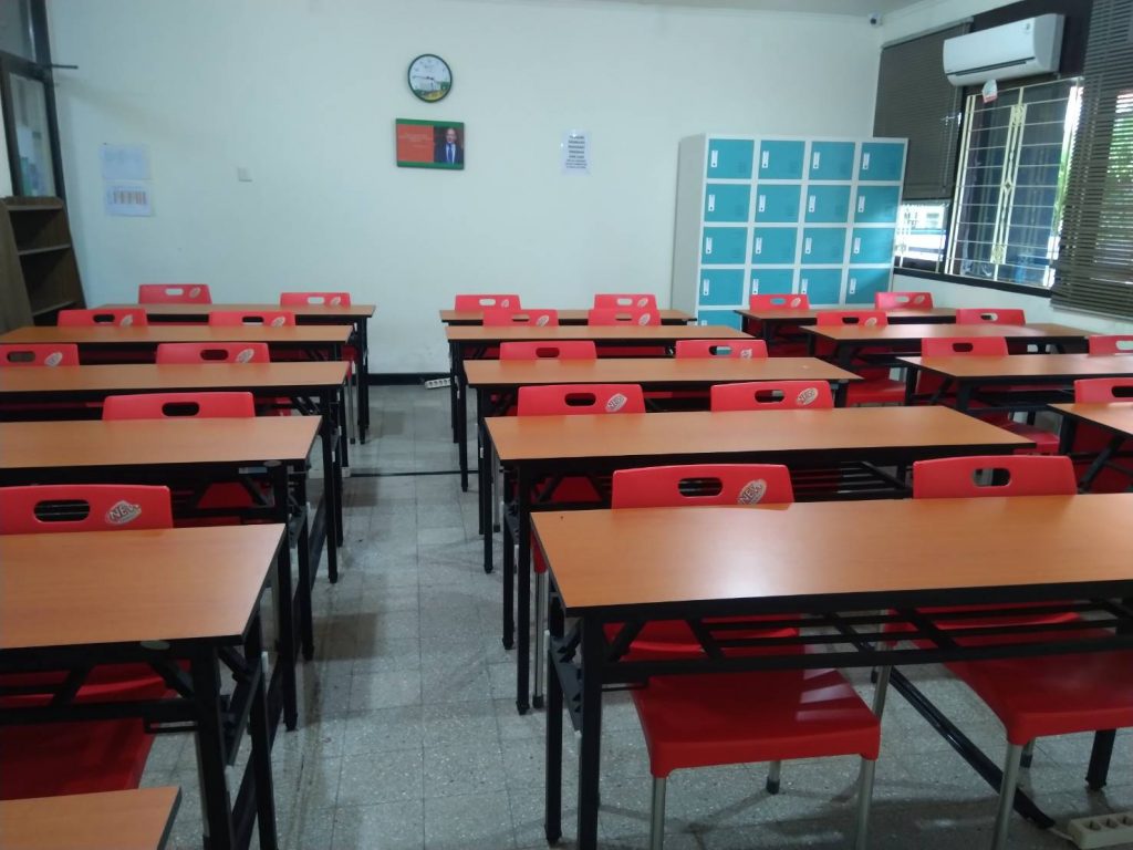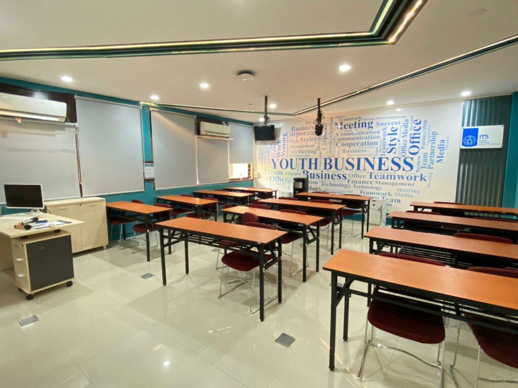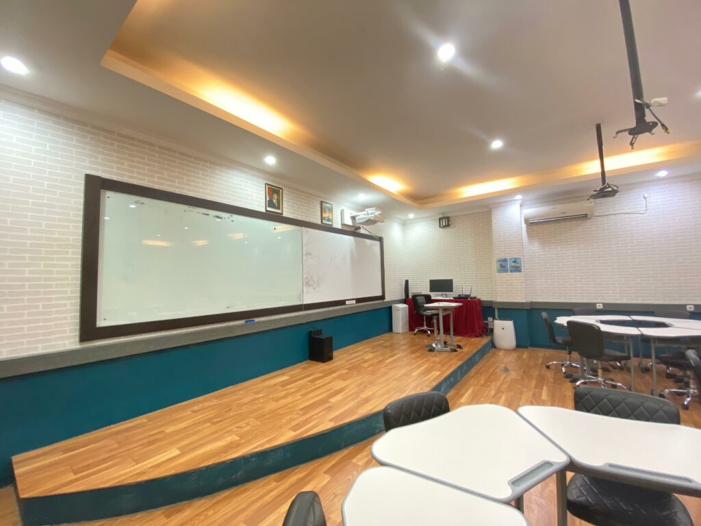 Ruang kuliah memiliki fasilitas yang memadai, dimana setiap dilengkapi dengan AC, LCD Projector, High-Speed Internet, Aver kamera, dan perlengkapan modern lainnya sehingga kegiatan belajar-mengajar menjadi lebih nyaman.