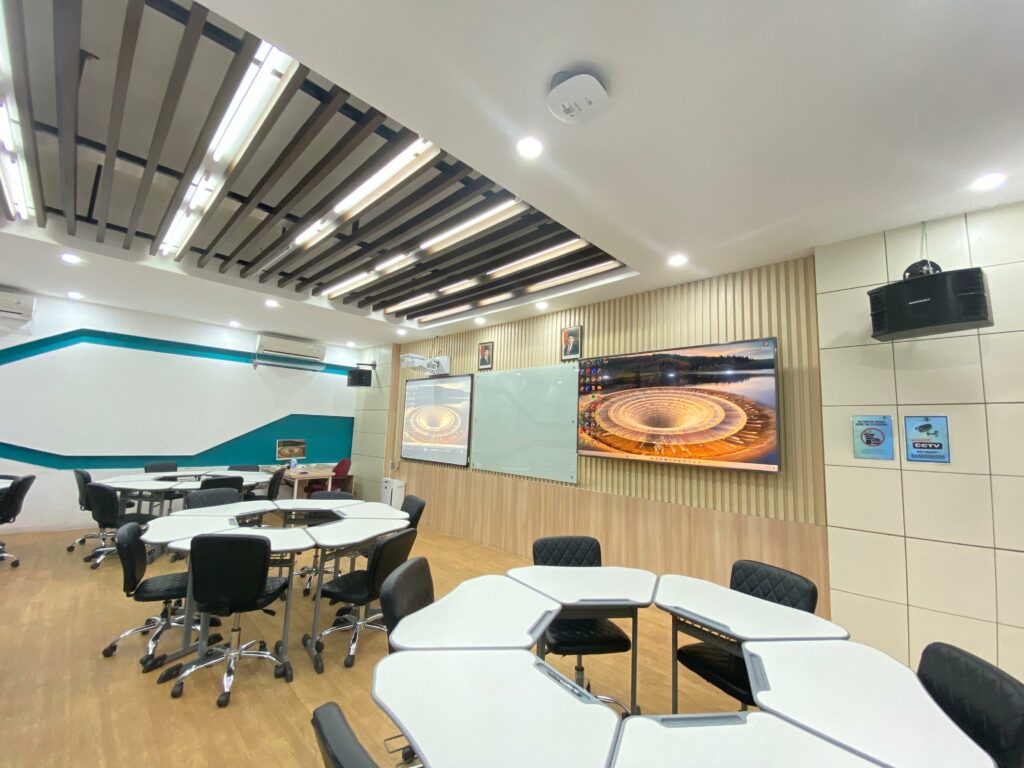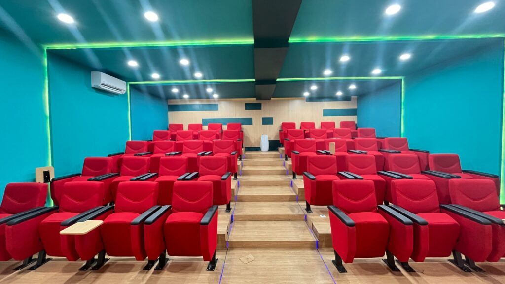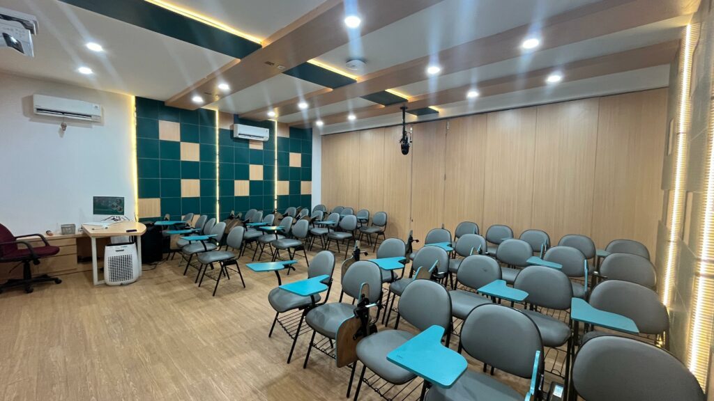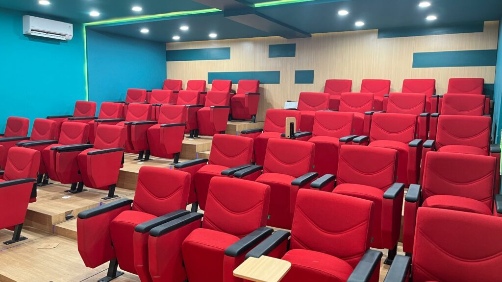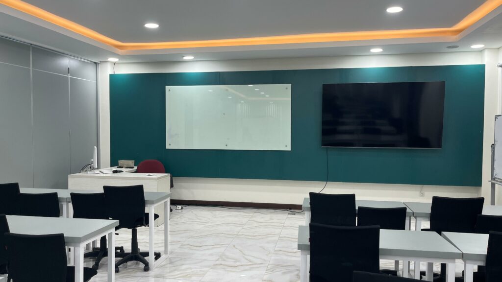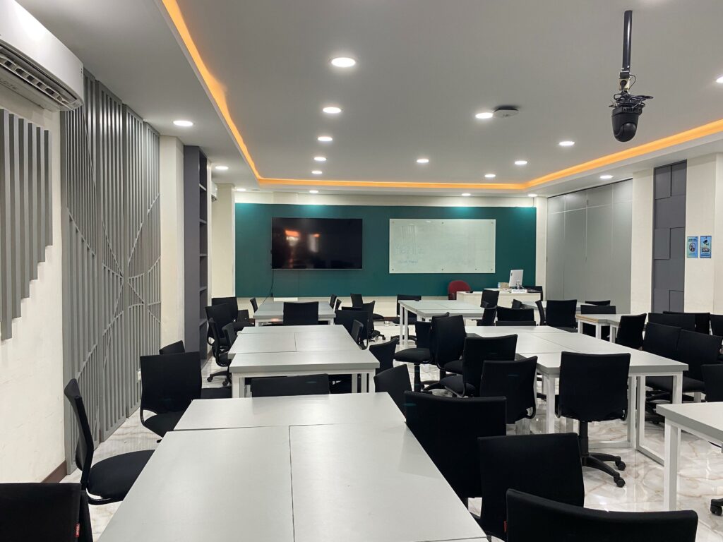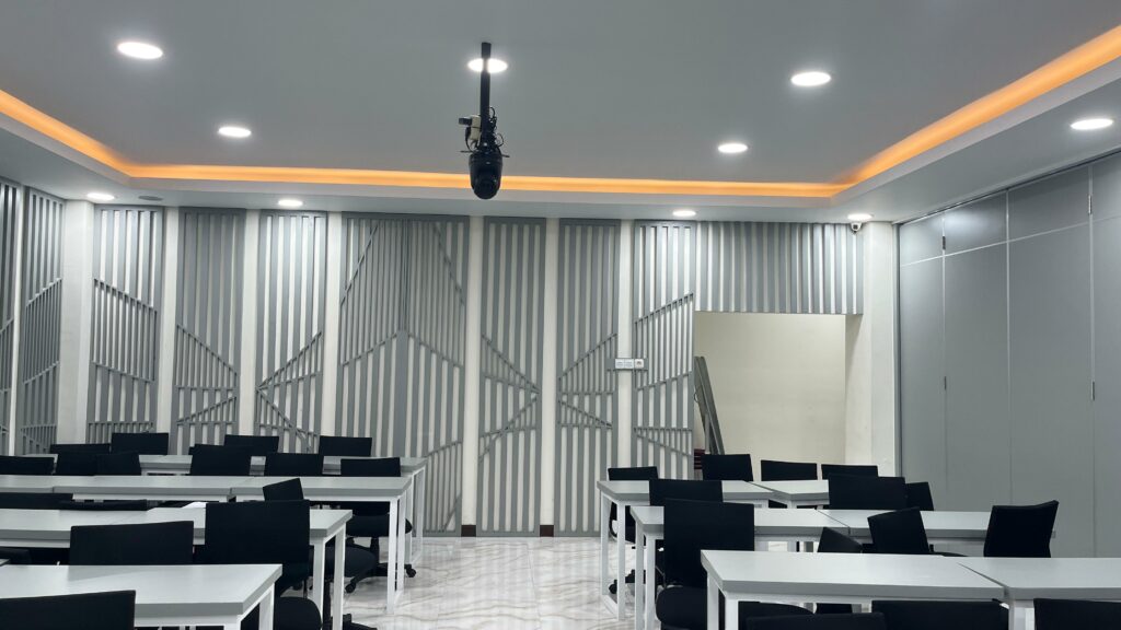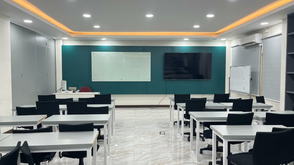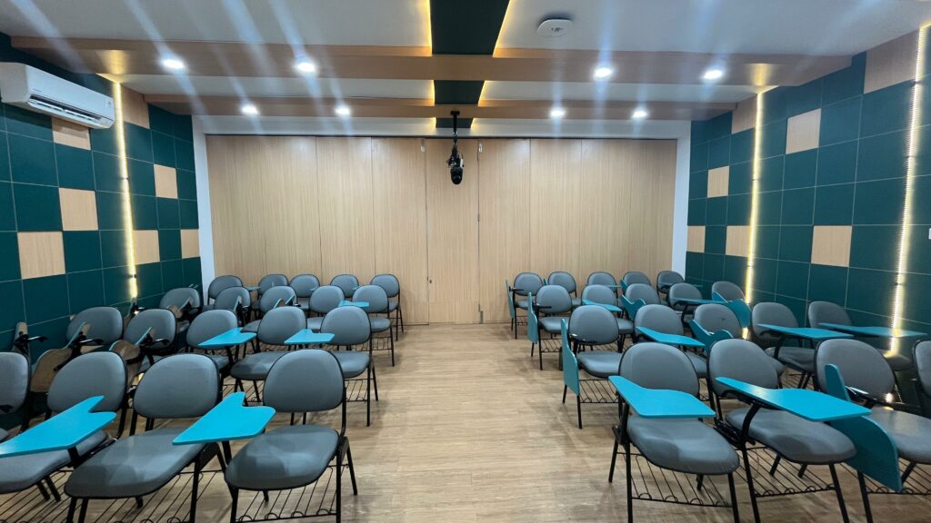 Ruang kuliah memiliki fasilitas yang memadai, dimana setiap dilengkapi dengan AC, LCD Projector, High-Speed Internet, Aver kamera, dan perlengkapan modern lainnya sehingga kegiatan belajar-mengajar menjadi lebih nyaman.