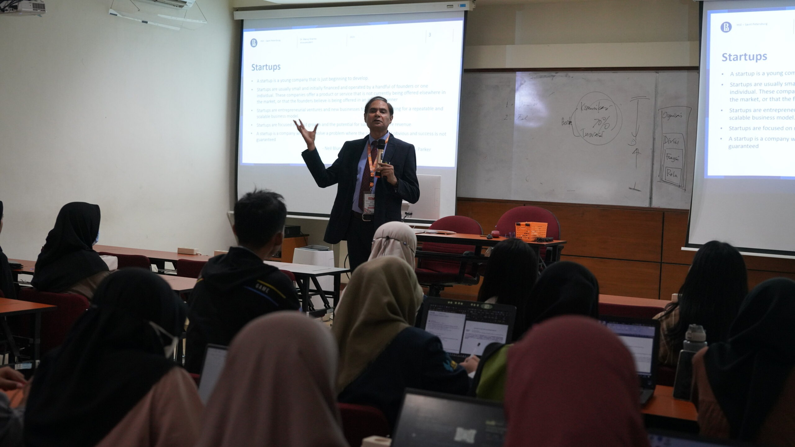 Mahasiswa Departemen Manajemen Bisnis sangat antusias mengikuti kuliah ini, karena mereka mendapatkan kesempatan langka untuk belajar langsung dari seorang ahli di bidangnya. Dr. Manoj Sharma membahas berbagai aspek penting dalam memulai bisnis start-up, mulai dari ide kreatif, pengembangan produk, strategi pemasaran, hingga pengelolaan risiko.