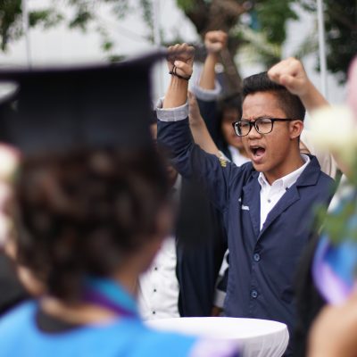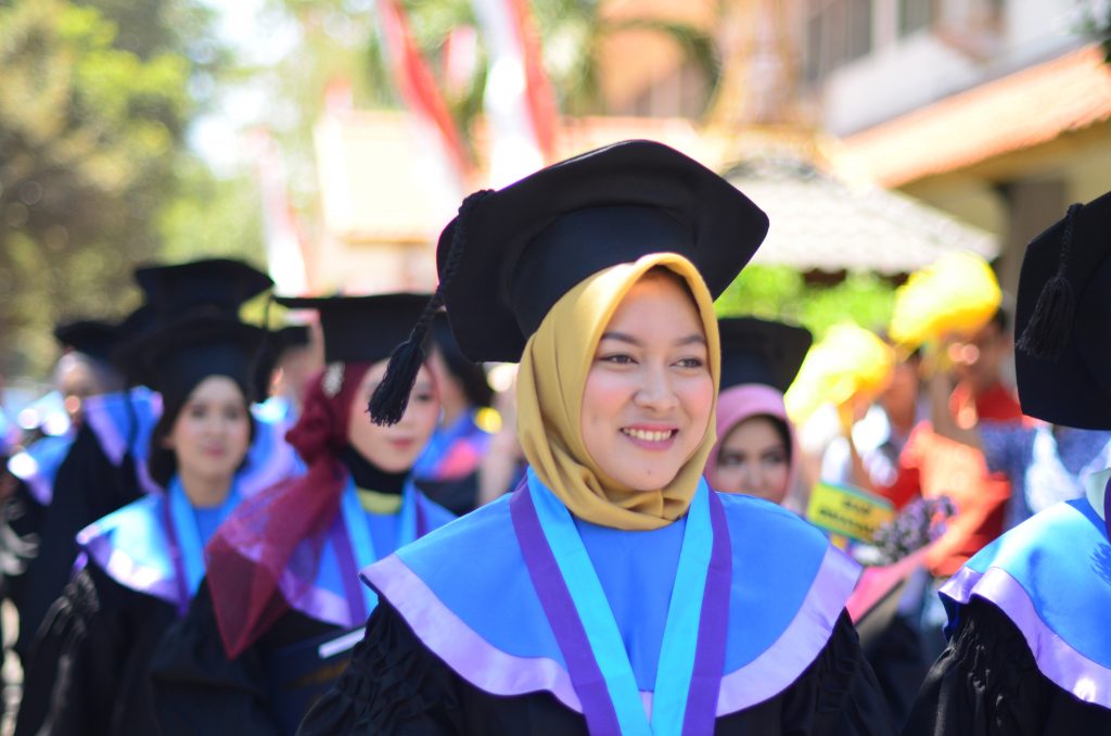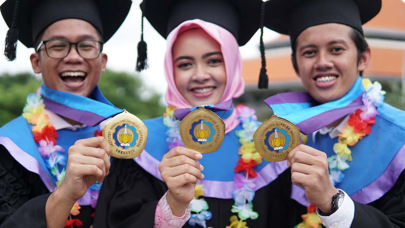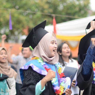 Arak-arakan wisuda dan acara syukuran pelepasan wisudawan Departemen Manajemen Bisnis ITS.
