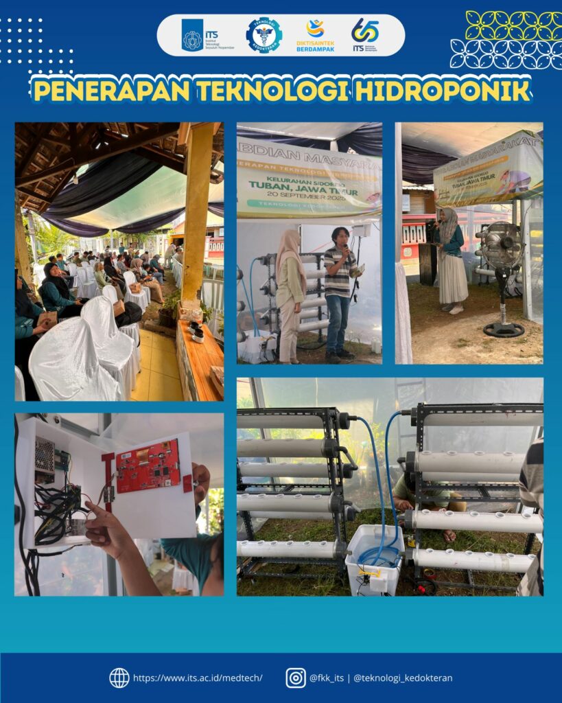 Dalam upaya meningkatkan pemanfaatan teknologi untuk kesejahteraan masyarakat, Program Studi Teknologi Kedokteran Institut Teknologi Sepuluh Nopember (ITS) melaksanakan kegiatan pengabdian masyarakat di Kelurahan Sidorejo, Tuban, Jawa Timur. Kegiatan ini mengusung tema “Penerapan Teknologi Hidroponik untuk Tanaman Obat Herbal”.