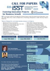 ISST is a annual conference managed by Graduate Program Institut Teknologi Sepuluh Nopember. In this year, ISST 2020 will by hosted by Department of Technology Management, Institut Teknologi Sepuluh Nopember in a cooperation with Graduate Program of Institut Teknologi Sepuluh Nopember. The main theme is “Fostering innovation projects for business growth”. ISST 2020 will be held alongside with MOTIP 2020 in Surabaya, July 25th, 2020.