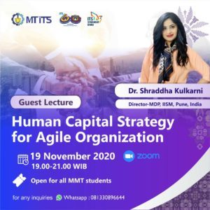 Guest Lecture: Human Capital Strategy for Agile Organization by Dr. Shraddha Kulkarni (Director MDP, IISM, Pune, India. Open for all students of MT ITS, for any inquiries contact us here.