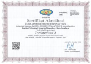 Institut Teknologi Sepuluh Nopember sebagai tempat bernaung Departemen Manajemen Teknologi telah terakreditasi A oleh BAN-PT.