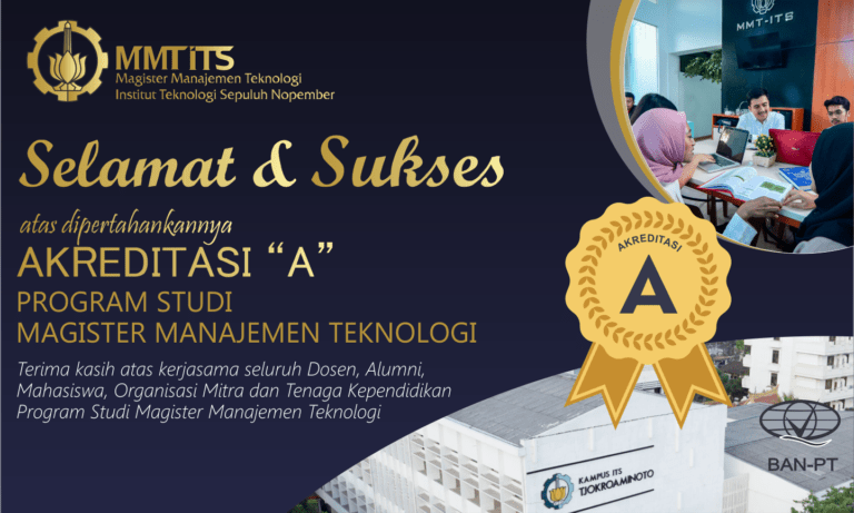 Akreditasi A kembali disematkan kepada Program Studi Magister Manajemen Teknologi Institut Teknologi Sepuluh Nopember