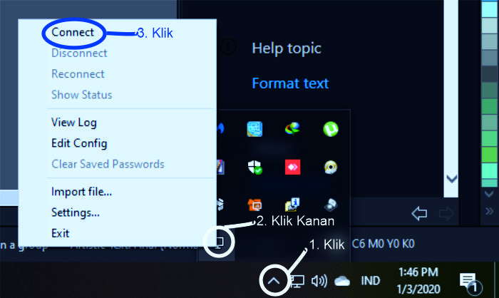 2. Untuk menjalankan VPN, silahkan running software tersebut dengan cara seperti ini dan silahkan klik menu di taskbar windows anda.