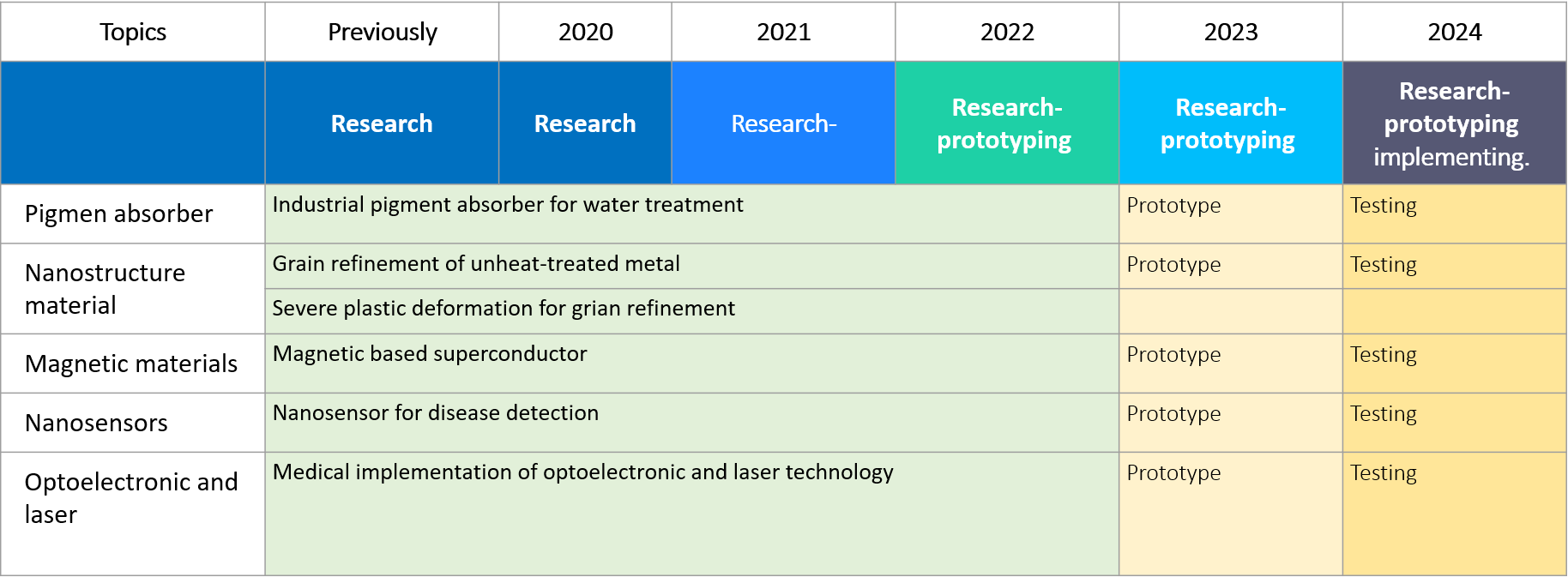 Berperan secara aktif dalam pengembangan ilmu pengetahuan dan teknologi terutama di bidang material maju dan teknologi nano dengan penelitian dan kerjasama mitra berskala nasional maupun internasional