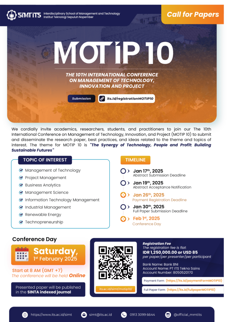 SIMT – ITS Proudly Present MOTIP 10 🇮🇩 THE 10TH INTERNATIONAL CONFERENCE ON MANAGEMENT OF TECHNOLOGY, INNOVATION AND PROJECT