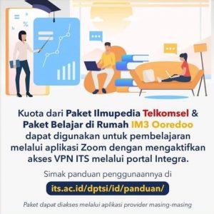 Selama masa pandemi COVID-19, Institut Teknologi Sepuluh Nopember (ITS) memberikan beberapa bantuan untuk meringankan mahasiswa dalam pembelajaran daring di my.its.ac.id, classroom.its.ac.id, share.its.ac.id, dan Aplikasi Zoom dengan: