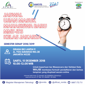 Jadwal Ujian Masuk Mahasiswa Baru MMT-ITS Kelas Jakarta Semester Genap 2018/2019