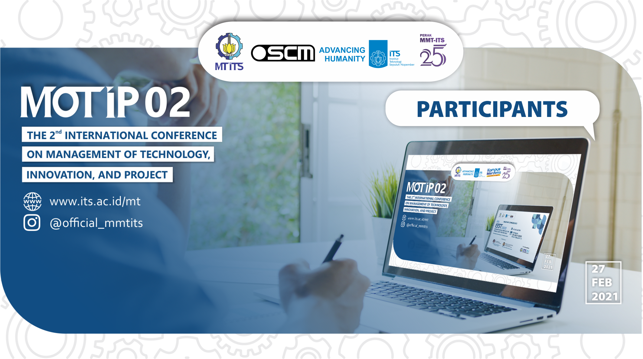 MOTIP 02 is a conference hosted by Department of Technology Management, Institut Teknologi Sepuluh Nopember. The main theme is “Technology, People, and Innovation in Supply Chain“. MOTIP 02 will be held online, December 14-15th, 2020 and February 27th, 2021 in collaboration with 10th International Conference on Operations and Supply Chain Management (OSCM)