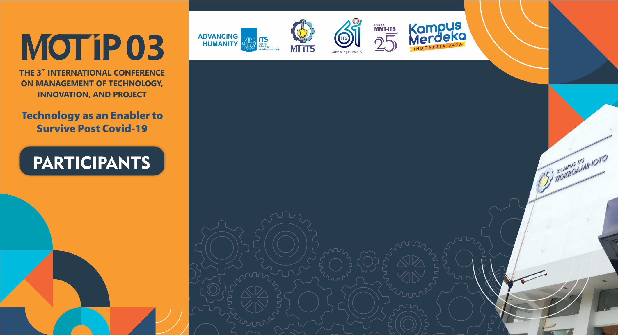 We are cordially invited all researchers, academicians, students, practitioners, and observers to join our The 3rd International Conference on Management of Technology, Innovation, and Project (MOTIP 03) to submit and disseminate the research paper, best practices, and ideas related to the theme and topic of interest. The theme for MOTIP 03 is “Technology as an enabler to survive post Covid-19”.