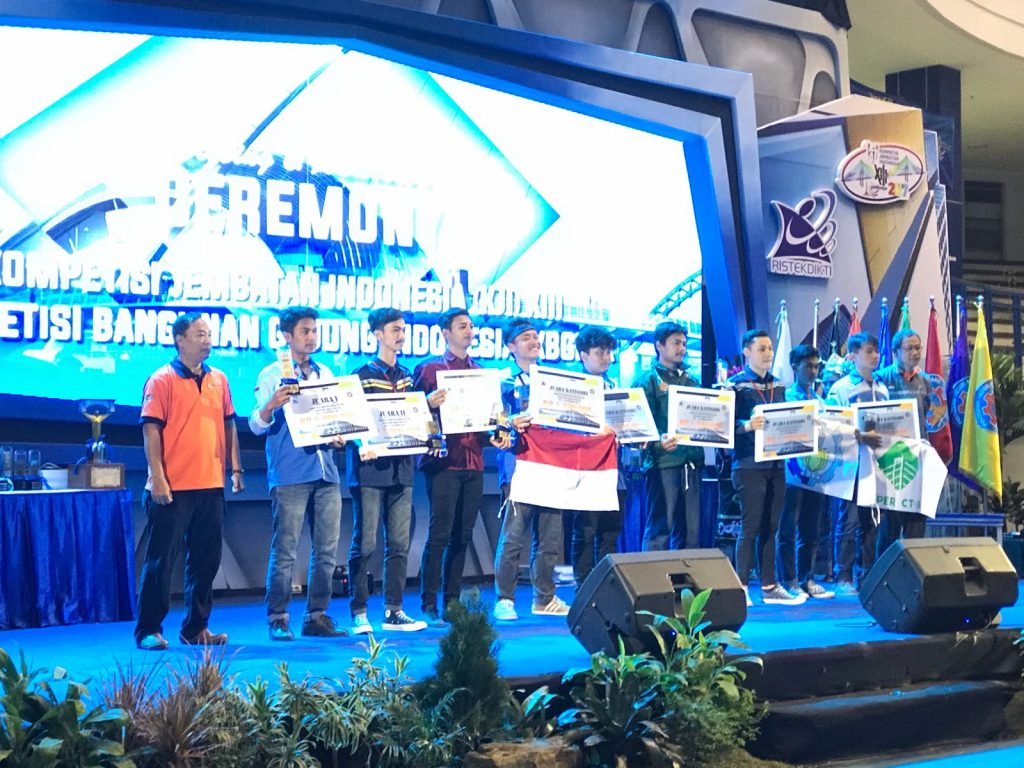 Kampus ITS Surabaya , ITS News – Departemen Teknik Infrastruktur Sipil Institut Teknologi Sepuluh Nopember (ITS) Surabaya patut berbangga dengan pencapaiannya dalam Kontes Jembatan Indonesia (KJI) dan Kontes Bangunan Gedung Indonesia (KBGI) 2017 yang dilaksanakan di Politeknik Negeri Malang, Minggu (12/11). Dalam gelaran tahunan ini, tim ITS berhasil menyabet kembali gelar juara umum untuk KBGI dan juara satu untuk kategori Jembatan Canai serta juara Implementasi Desain kategori Jembatan Baja untuk KJI.