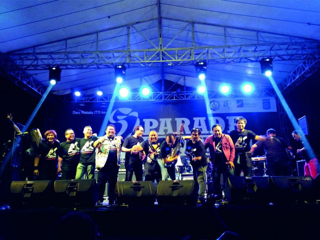 Kampus ITS Surabaya, ITS News – Ikatan Alumni ITS, Himpunan Pengusaha Alumni ITS dan ITS Surabaya menggelar konser Parade Rock Pahlawan untuk kali pertama di depan Gedung Robotika ITS, Sabtu (18/11).Dimeriahkan oleh band kawakan asal ITS sendiri, parade ini sukses membuat para penonton larut dalam alunan musik rock.