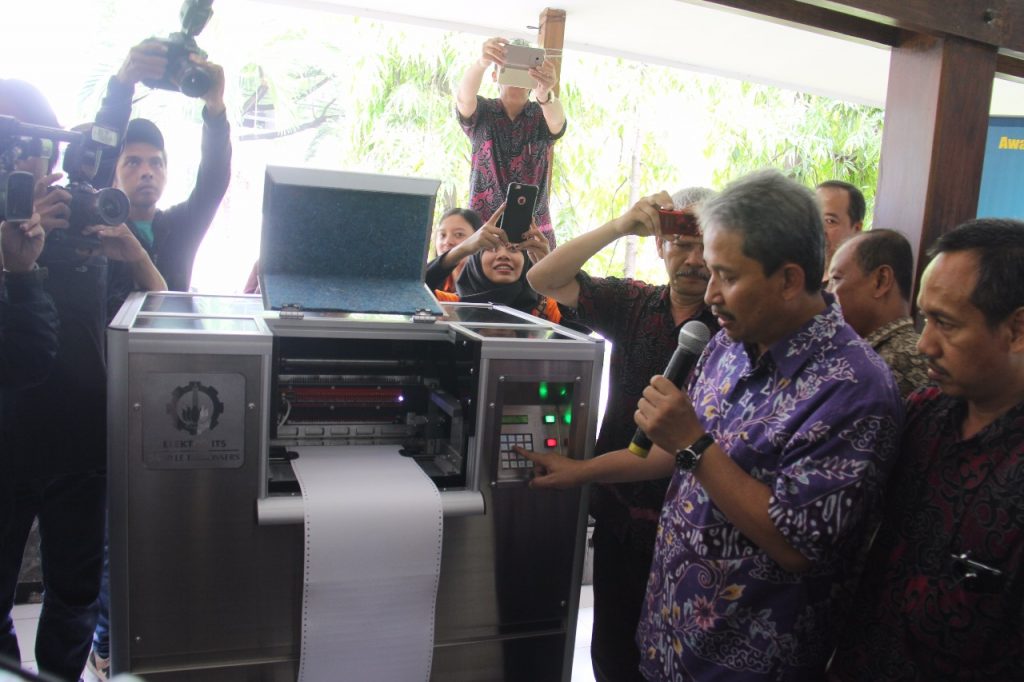 Rektor ITS Prof Ir Joni Hermana MScES PhD meresmikan uji coba dan juga menjajal mesin cetak Braille hasil karya tim dosen dari Fakultas Teknologi Elektro (FTE) di sekolah luar biasa (SLB) Yayasan Pendidikan Anak Buta (YPAB) di Jalan Gebang Putih, Surabaya Kamis (23/11). Hasil cetakan braille itu pun dibacakan langsung oleh beberapa siswa didik SLB YPAB untuk membuktikan keakuratan mesin tersebut. Mesin cetak Braille (Braille Embossers) ini merupakan mesin pencetak huruf Braille, yakni aksara yang digunakan para penyandang tunanetra untuk membaca. Sehingga hasil cetakannya pun berbeda dengan printer pada umumnya, karena huruf yang dicetak berbentuk timbul.Mesin yang dapat mencetak 1.200 halaman per jam ini dikembangkan oleh tim dosen dari FTE ITS dengan tim inti yang beranggotakan tiga orang, yakni Dr Tri Arief Sardjono ST MT (ketua tim), Ir Tasripan MT, dan Ir Hendra Kusuma MEngSc.