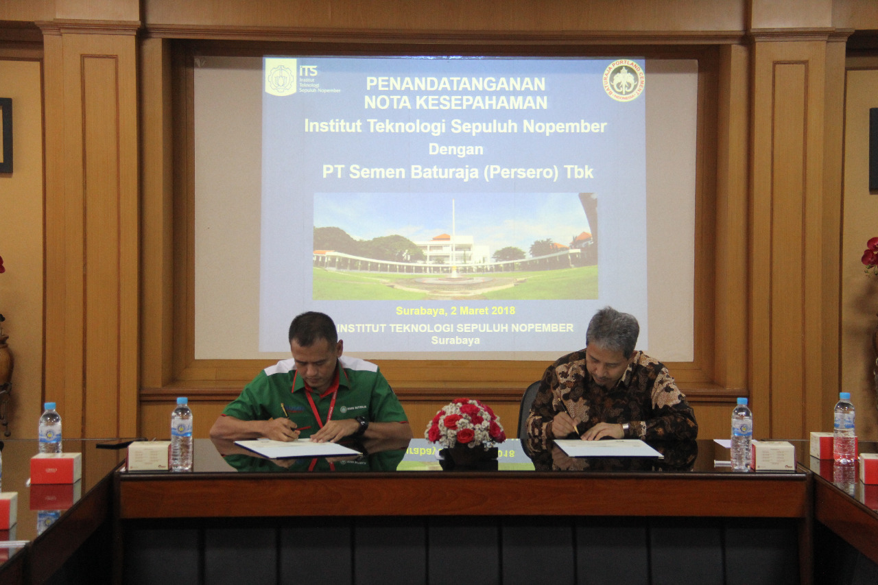 Guna lebih memperkuat hubungan antara institusi pendidikan dengan perusahaan milik negara, Institut Teknologi Sepuluh Nopember (ITS) Surabaya melakukan penandatanganan nota kesepahaman (Memorandum of Understanding/MoU) dengan PT Semen Baturaja (Persero) Tbk di Rektorat ITS, Jumat (2/3).