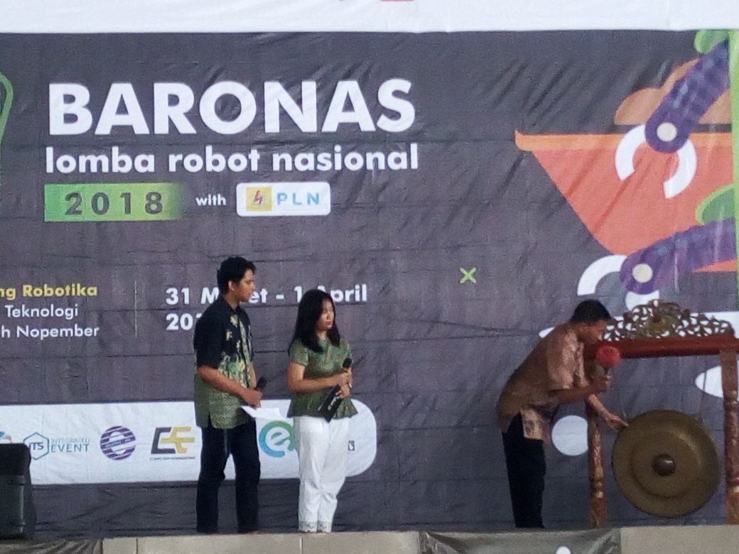 Kampus ITS, ITS News – Fakultas Teknologi Elektro (FTE) Institut Teknologi Sepuluh Nopember (ITS) Surabaya kembali mengadakan agenda besar, yakni Lomba Robot Nasional (Baronas) 2018. Bertempat di Pusat Robotika ITS, kegiatan ini resmi dibuka Sabtu (31/3).