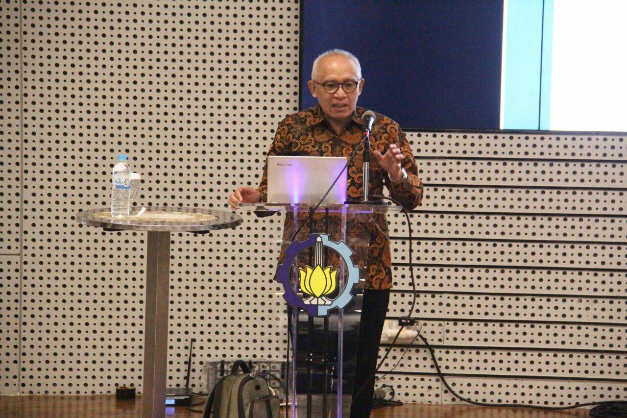 Ketua Majelis Akreditasi Badan Akreditasi Nasional Perguruan Tinggi (BAN-PT), Prof Ir Dwiwahju Sasongko MSc PhD saat memberikan pemaparan di Gedung Pusat Riset ITS.