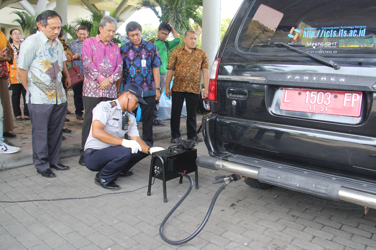 Rektor ITS bersama Kadishub Surabaya memantau secara langsung kegiatan uji emisi kendaraan.