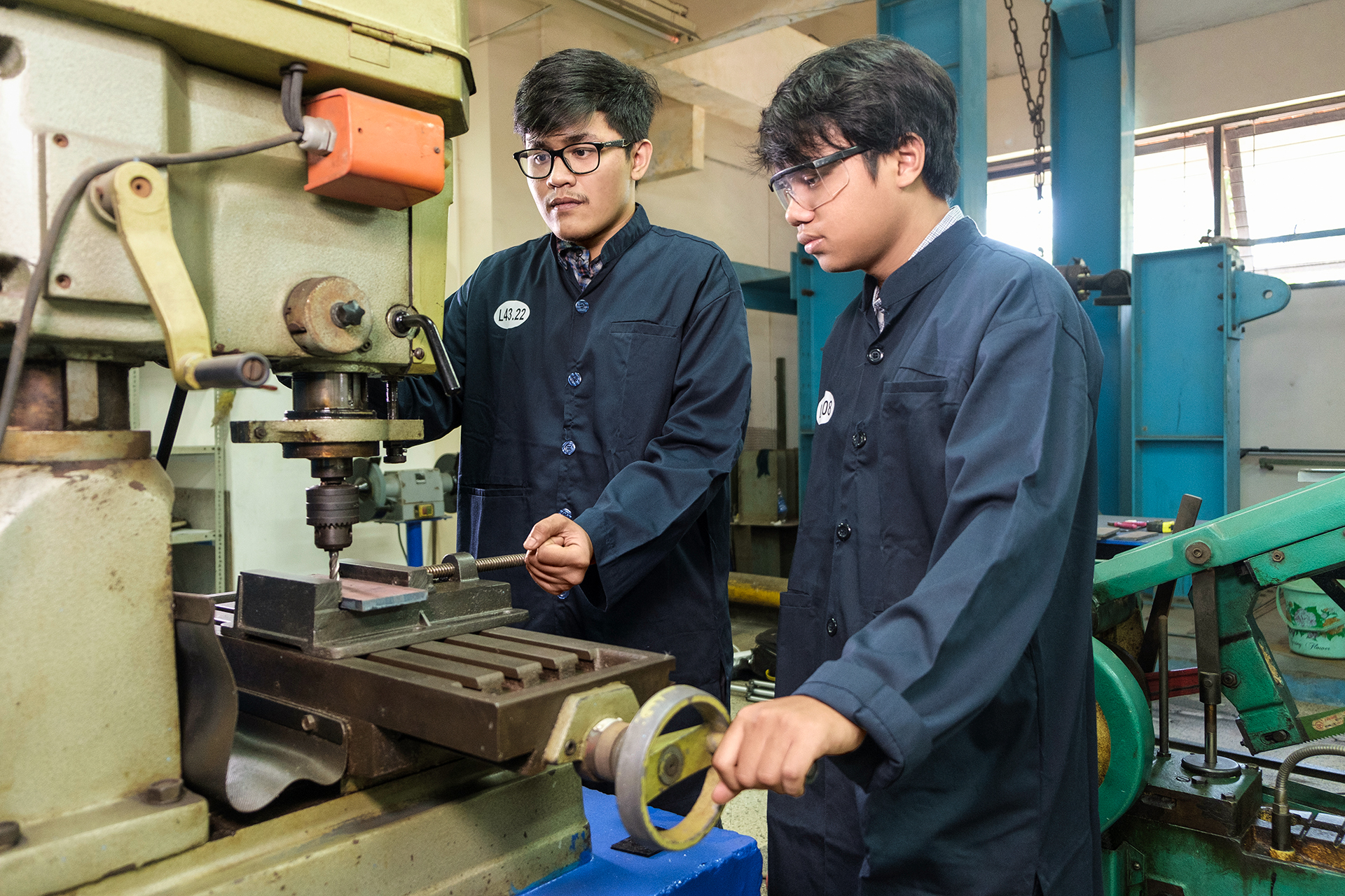 Mahasiswa Fakultas Teknologi Kelautan ITS sedang melakukan eksperimen di laboratorium.