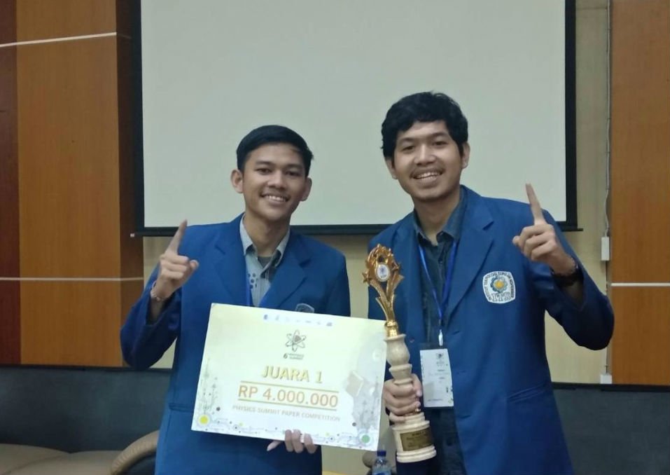 Renaldi M Situmorang dan Boy Bastian Pardede Ketika Menerima Gelar Juara Pertama pada Physics Summit Paper Competition (PSPC).