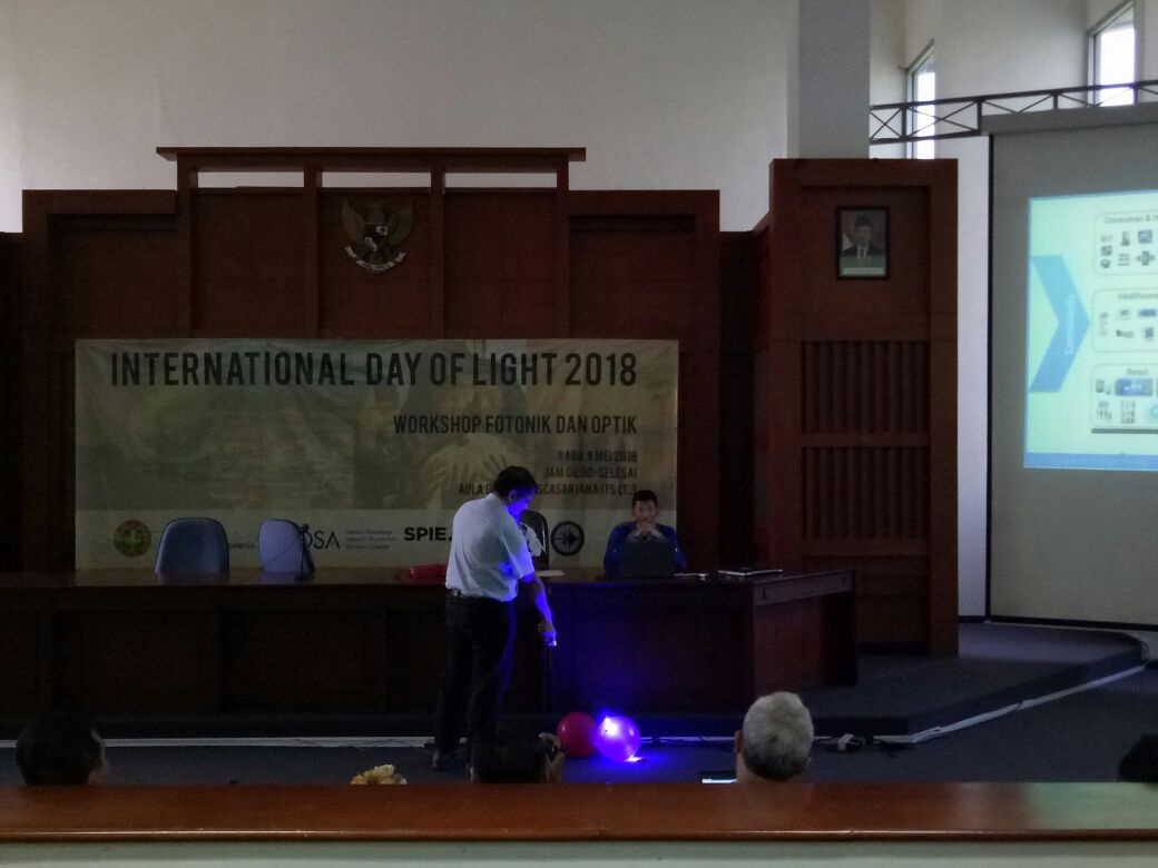 Seorang embicara memaparkan materinya dalam wokshop memperingati Hari Cahaya Internasional.