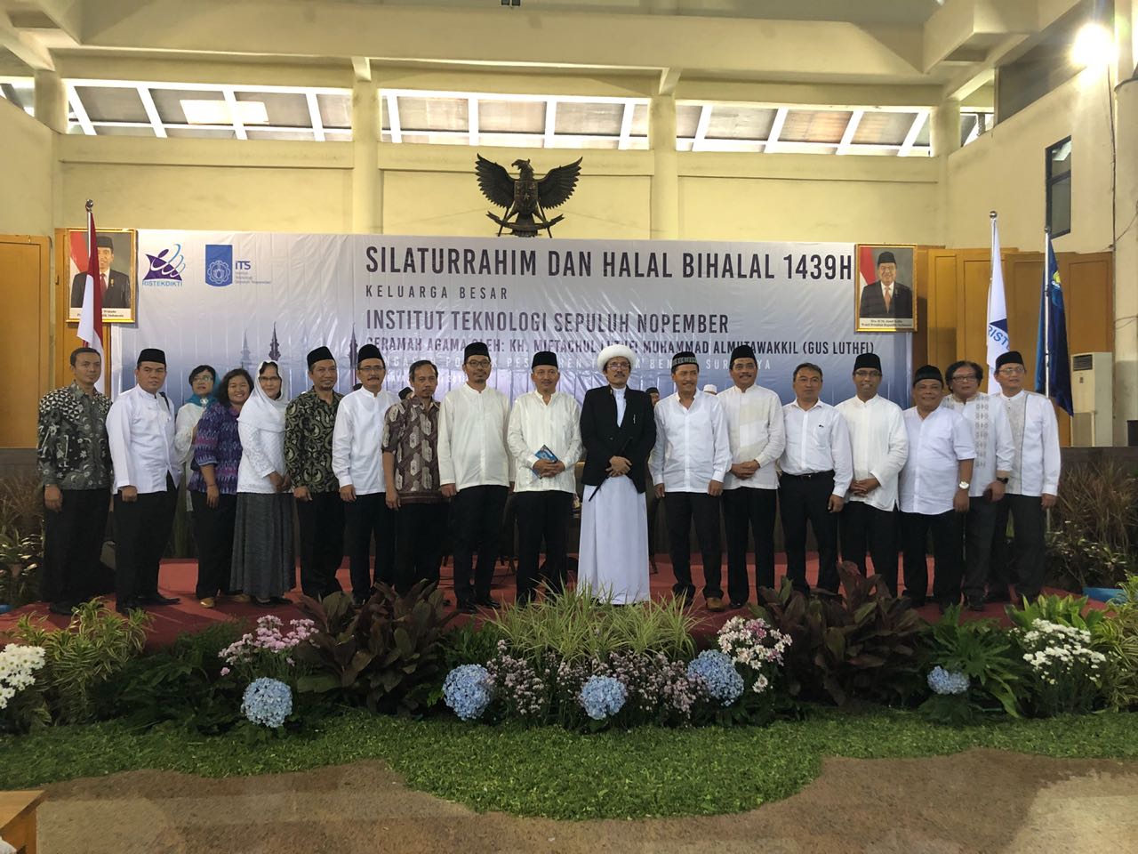 Kampus ITS, ITS News – Institut Teknologi Sepuluh Nopember Surabaya menggelar halal bihalal pada Kamis (21/6) di Grha Sepuluh Nopember Surabaya. Acara ini dihadiri oleh sekitar 2000 tenaga pendidik ITS bersama rektor ITS Prof Ir Joni Hermana MSc Es. Pada acara ini, ITS juga turut mengundang KH Miftahul Luthfi Muhammad al Mutawakkil dari pondok Pesantren Tambak Bening Surabaya sebagai pemberi tausyiah.