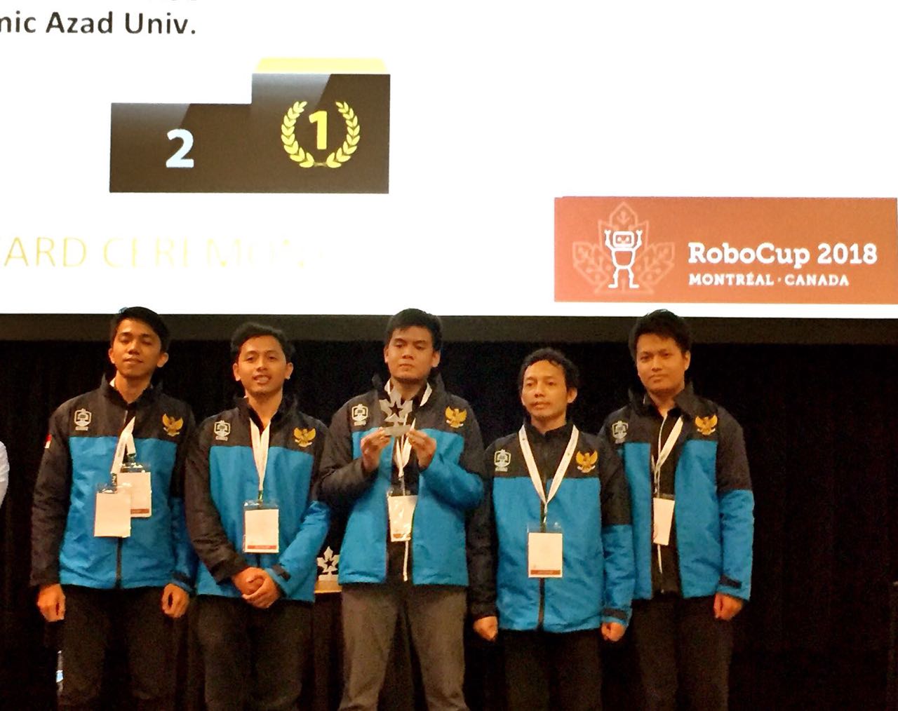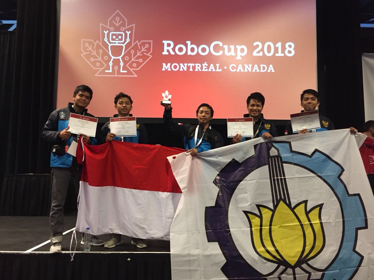 Montreal, ITS News – Hasil memuaskan dan membanggakan berhasil diraih oleh tim robot soccer Ichiro dari Institut Teknologi Sepuluh Nopember (ITS) Surabaya. Setelah bertarung melawan tim-tim andalan dari seluruh dunia, Tim Ichiro ITS berhasil menjadi juara pertama kategori Humanoid League Teensize Soccer Competition pada kompetisi robot soccer tingkat dunia RoboCup 2018 di Montreal, Kanada yang berakhir pada Kamis (21/6) waktu setempat.