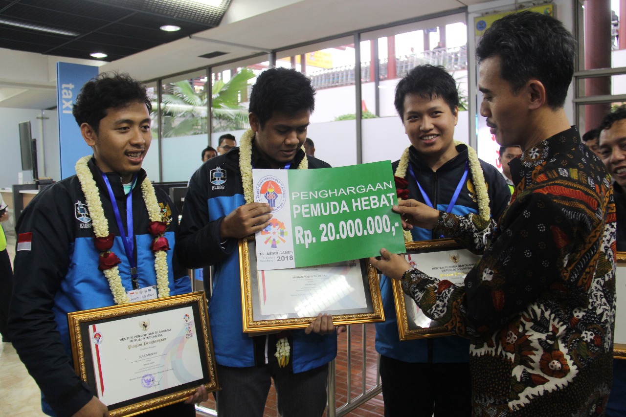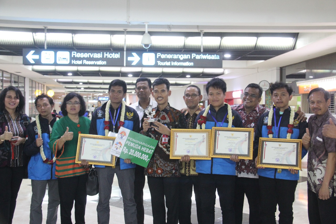 Kampus ITS, ITS News – Selasa sore, (26/6), setibanya di Bandara Soekarno Hatta, Cengkareng, Indonesia, Tim Ichiro Institut Teknologi Sepuluh Nopember (ITS) Surabaya mendapat kehormatan dari Menteri Pemuda dan Olahraga (Menpora). Melalui Deputi Bidang Pengembangan Pemuda Dr H Asrorun Ni’am Sholeh MA, Ichiro ITS dianugerahi penghargaan “Pemuda Hebat Indonesia 2018” atas prestasi yang telah berhasil mengharumkan nama ITS dan Indonesia di kancah dunia.