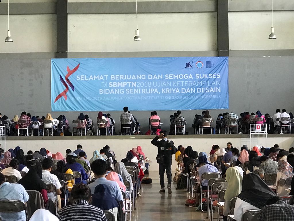 Proses Ujian SBMPTN 2018 Keterampilan Bidang Seni Rupa, Kriya dan Desain di Pusat Robotika ITS.
