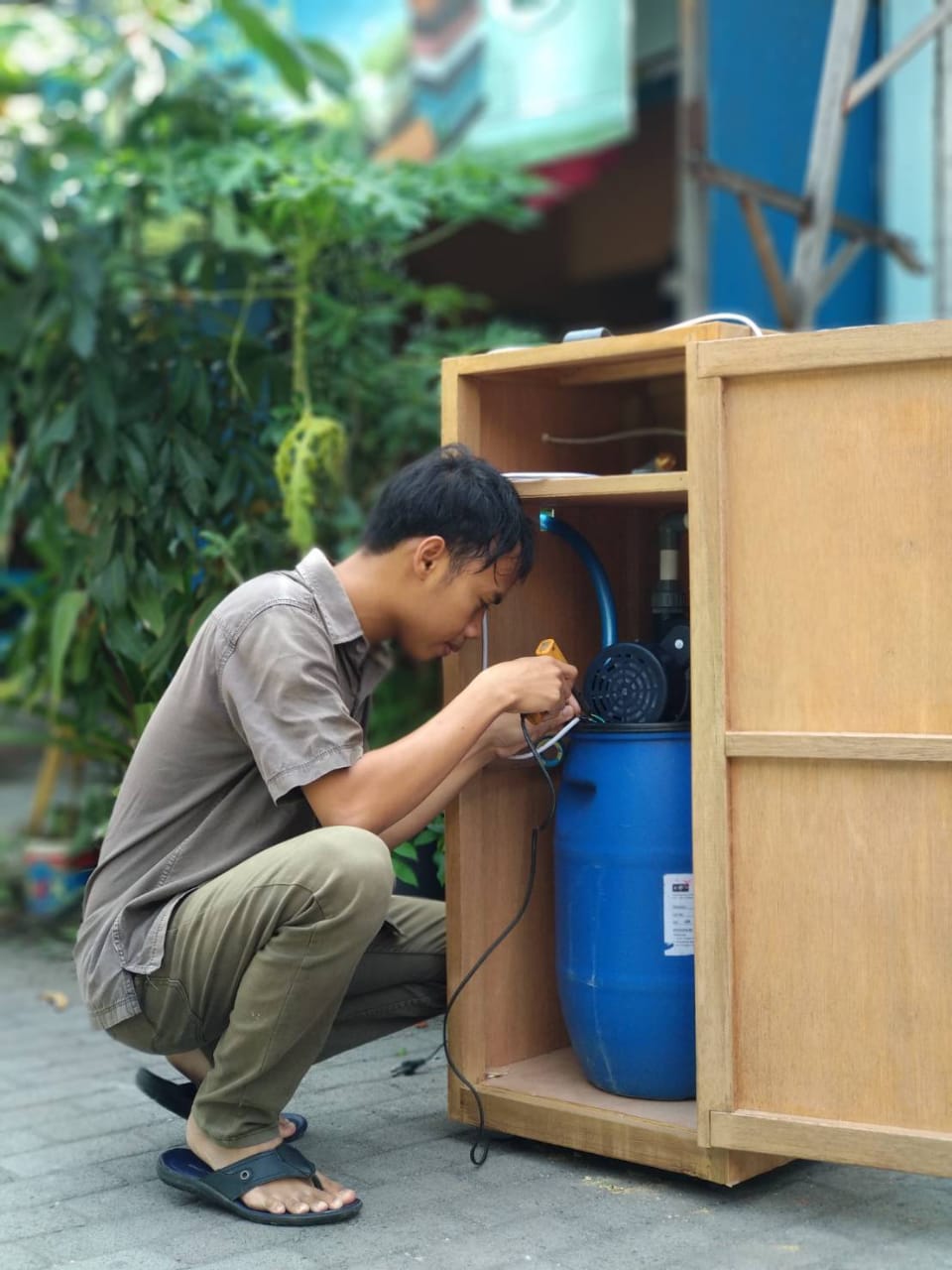 “Dari rekaman tersebut, microcontroller raspberry pi yang kami gunakan akan memicu modul relay, menyalakan pompa, dan menyemprotkan air,” terang mahasiswa asal Malang ini.