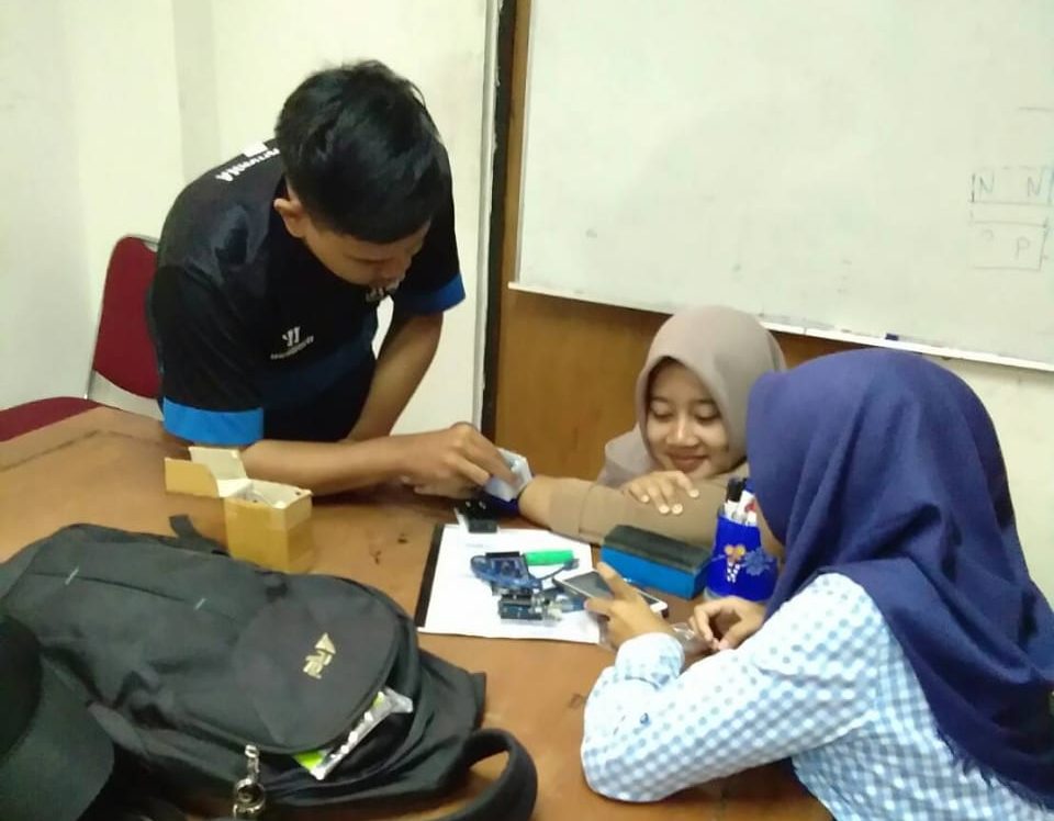 Pada gelang ini terdapat tiga buah sensor yang digunakan. “SHT11 untuk mendeteksi suhu tubuh, sensor oxymeterpulse untuk mendeteksi denyut nadi, dan sensor MAX30100 untuk mendeteksi kadar oksigen, serta LED (Light Emitting Diodes, red),” papar Elysa Nensy Irawan, ketua tim.