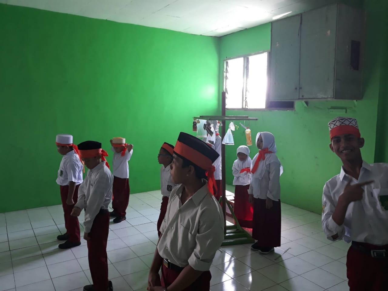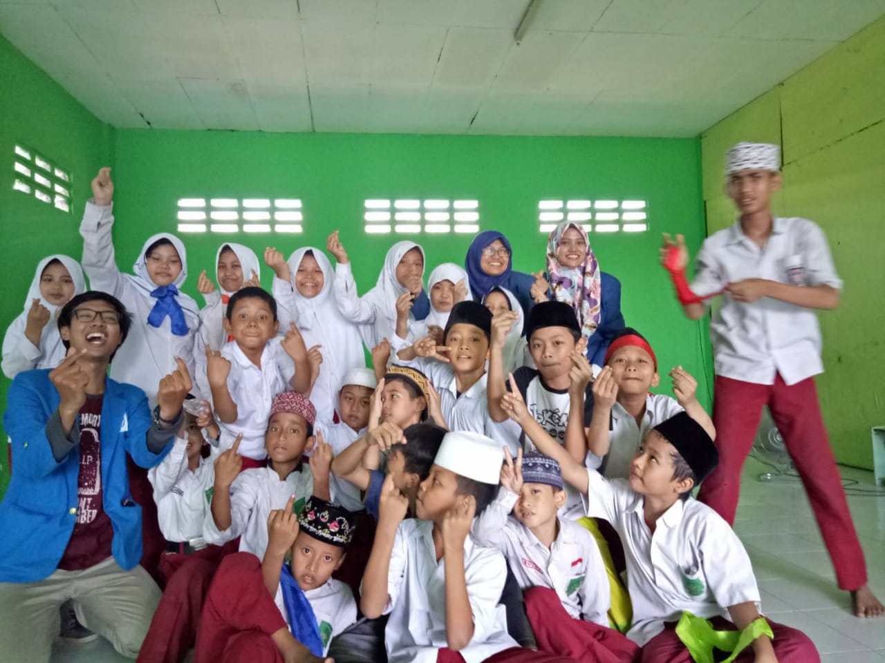 Siswa MI Muhyiddin, Surabaya terlihat ceria setelah kedatangan tim mahasiswa ITS yang menyosialisasikan mengenai pengolahan sampah.