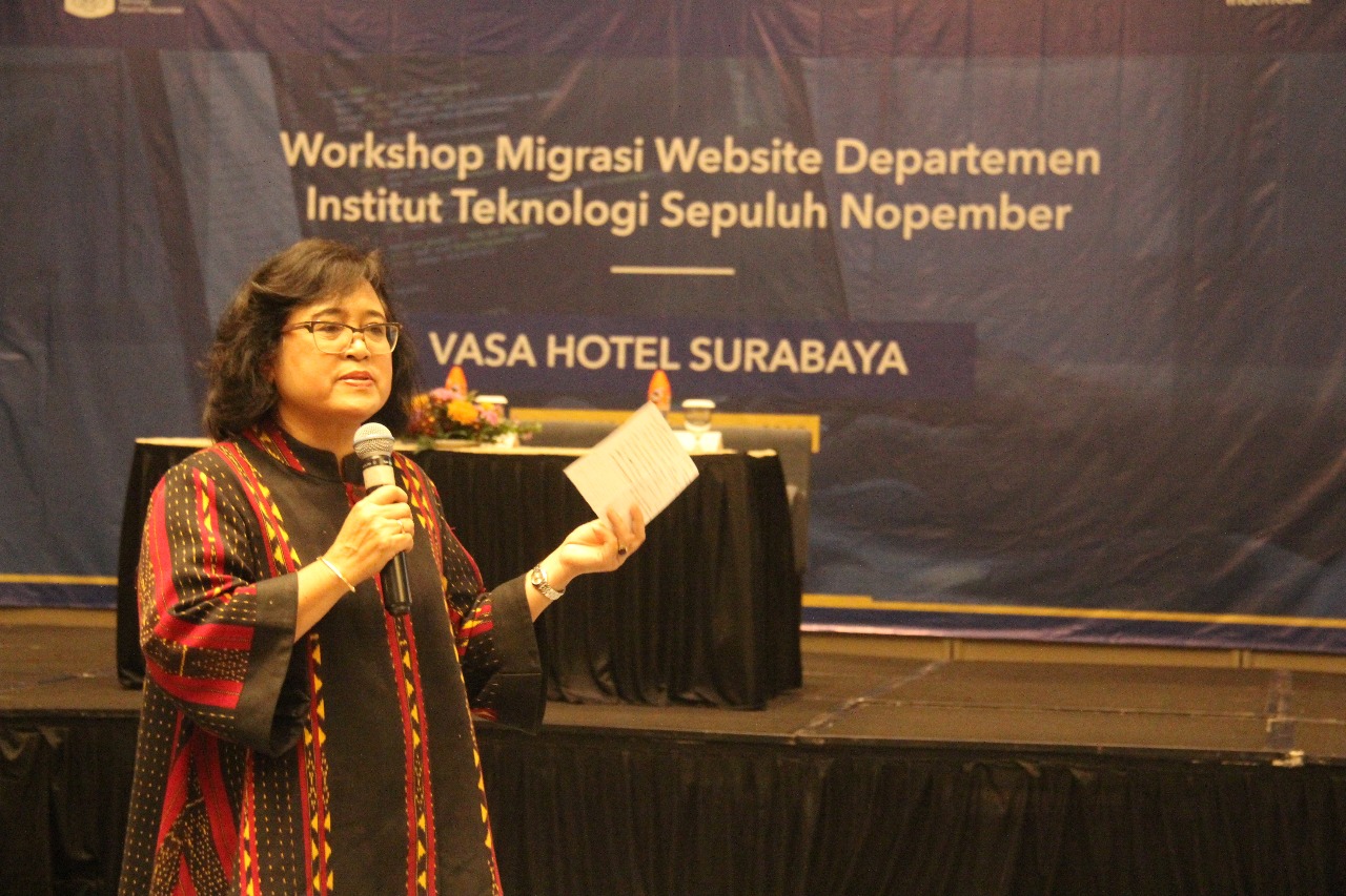 Rektor ITS, Prof Ir Joni Hermana saat memberikan sambutan dalam Workshop Migrasi Website ITS.