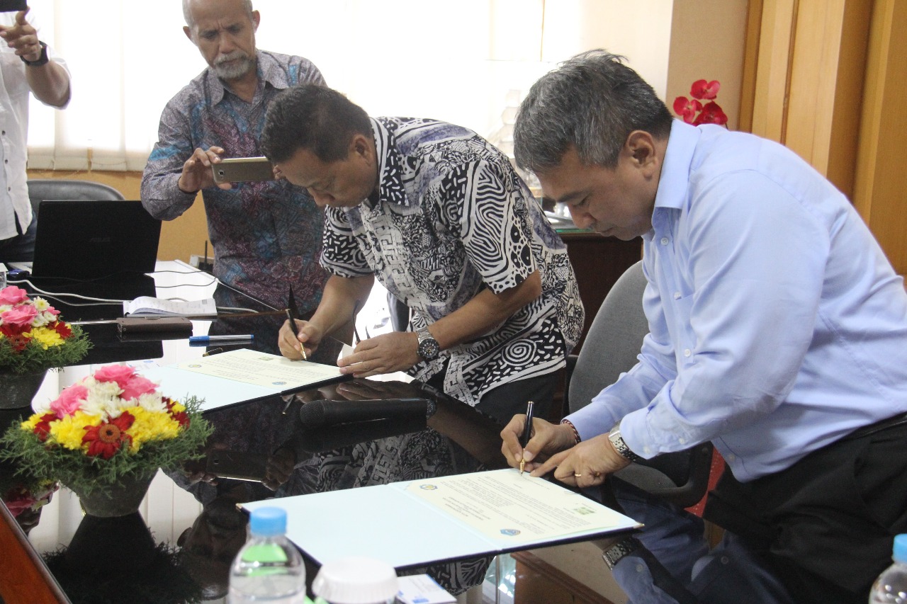 Dr Sunaryo, Kepala Bappeda Busel (kiri) dan Prof Dr Ketut Budha Artana saat menandatangani MoU.