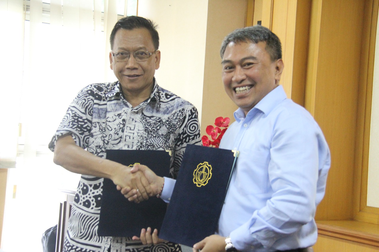 Dr Sunaryo, Kepala Bappeda Buton Selatan (kiri) dan Prof Dr Ketut Budha Artana usai menandatangani MoU. Pemkab Buton Selatan menggaet ITS untuk kerja sama bidang kemaritiman.