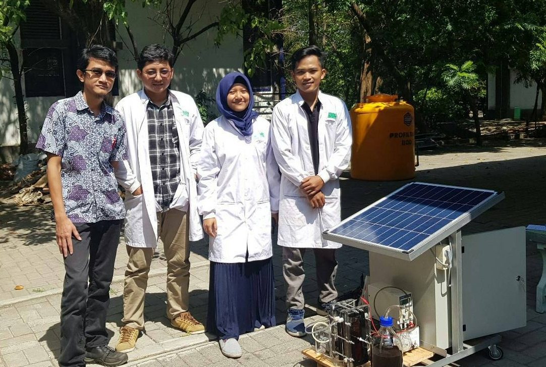 Mengemban konsep sustainable green technology, tim bimbingan Arseto Yekti Bagastyo ST MT Phd ini menggunakan reaktor sel surya (photovoltaic) sebagai pemasok listrik untuk alatnya. “Energi yang didapatkan dari sinar matahari diubah menjadi listrik, kemudian disimpan dalam baterai sebagai sumber energi untuk proses elektrokimia,” tuturnya.