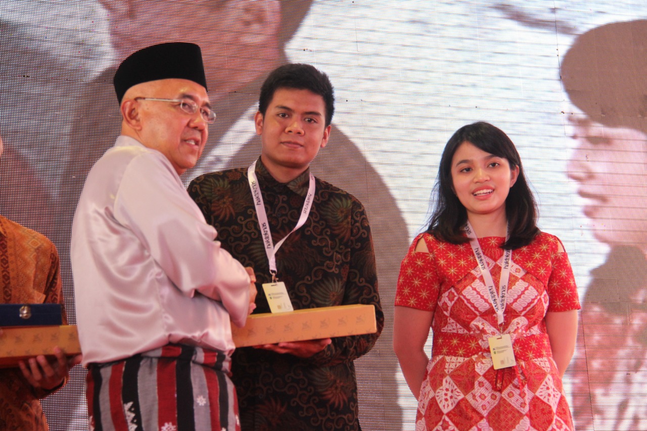 Muhammad Reza Ar Razi saat menerima medali penghargaan Hakteknas 2018 yang diserahkan oleh Gubernur Riau Arsyadjuliandi Rachman