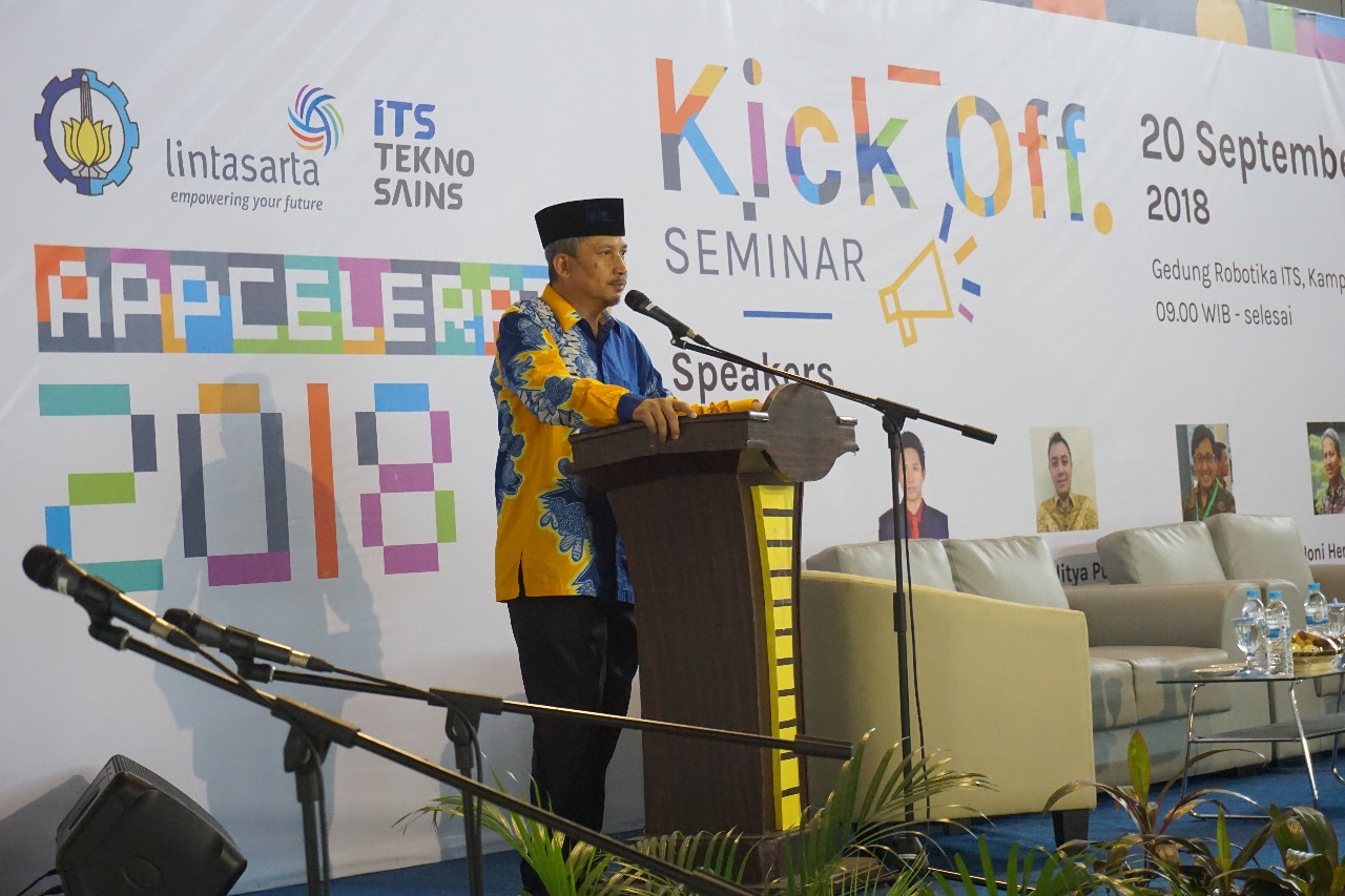 Kampus ITS, ITS News – Badan Pengembangan dan Pengelola Usaha (BPPU) Institut Teknologi Sepuluh Nopember (ITS) Surabaya bersama Lintasarta kembali menyelenggarakan Kompetisi ITS Appcelerate 2018 bertajuk Smart City, Finance Banking, dan Finance Non-Banking. Kemasan program berupa kompetisi rencana bisnis yang berfokus pada inovasi produk berbasis aplikasi digital ini secara resmi diluncurkan dalam Kick Off Seminar Appcelerate 2018, Kamis (20/9), di Gedung Pusat Robotika ITS.