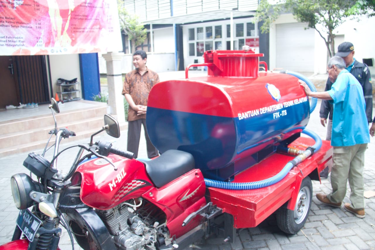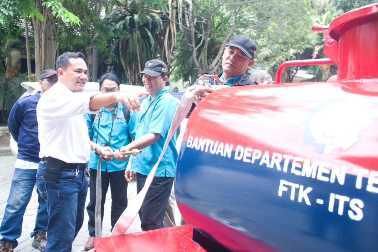 Kampus ITS, ITS News – Departemen Teknik Kelautan (DTK) Institut Teknologi Sepuluh Nopember (ITS) Surabaya melalui program pengabdian masyarakat menghibahkan sebuah kendaraan pemadam kebakaran mini (damkar mini) kepada Lembaga Pemberdayaan Masyarakat Kelurahan (LPMK) Margorejo, Kecamatan Wonocolo, Surabaya. Damkar Mini tersebut resmi diserahkan kepada pihak LPMK Margorejo pagi ini, di gedung DTK ITS, Rabu (19/9).