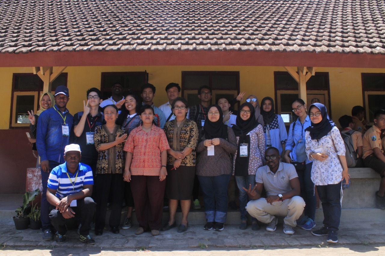 Mahasiswa asing berfoto bersama pelajar di SMP Sitiarjo