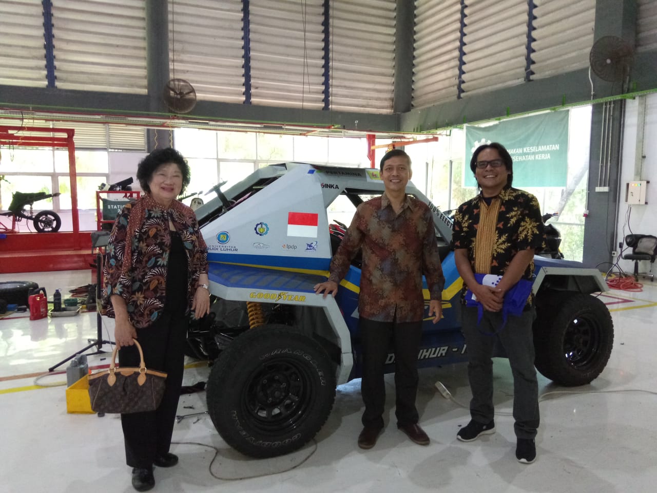 Pimpinan UMN berfoto dengan Ketua Molina ITS di depan Purwarupa Mobil Listrik