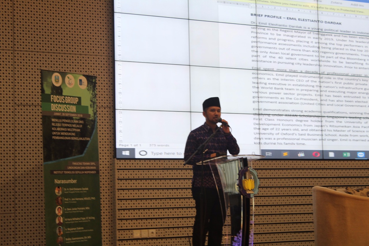 Kampus ITS, ITS News – Pembangunan berkelanjutan tidak akan berjalan tanpa adanya kerjasama yang baik antara masyarakat, lembaga pendidikan, dan instansi pemerintah. Berangkat dari hal tersebut, ITS menghelat Focus Group Discussion (FGD) Daerah Aliran Sungai (DAS) Rejoso yang juga dihadiri oleh Wakil Gubernur Jawa Timur terpilih, Dr Emil Elestianto Dardak MSc. Diskusi ini berlanngsung di Gedung Research Center ITS pada Jumat (28/09).