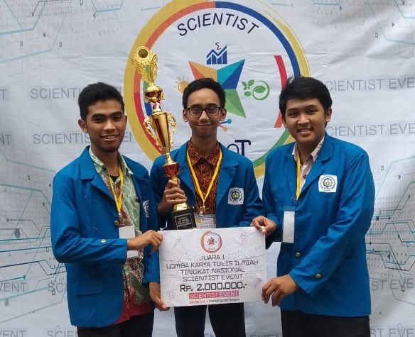 (kiri ke kanan) Ikhlasul Amal Rianto, Avenzoar Zufar Qisthauzan, dan Muhammad Ainul Yaqin setelah memenangkan kompetisi karya tulis ilmiah tingkat nasionall.