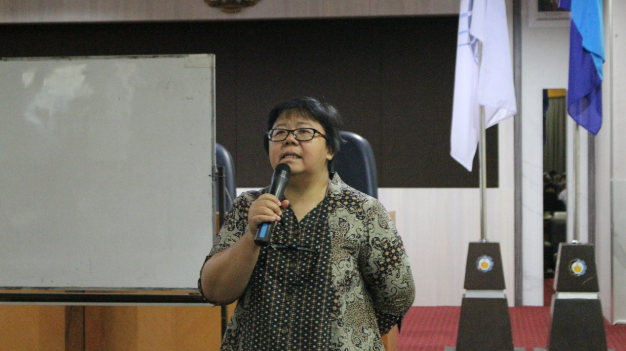 Maria saat memberikan materi tentang minimnya doktor di Indonesia