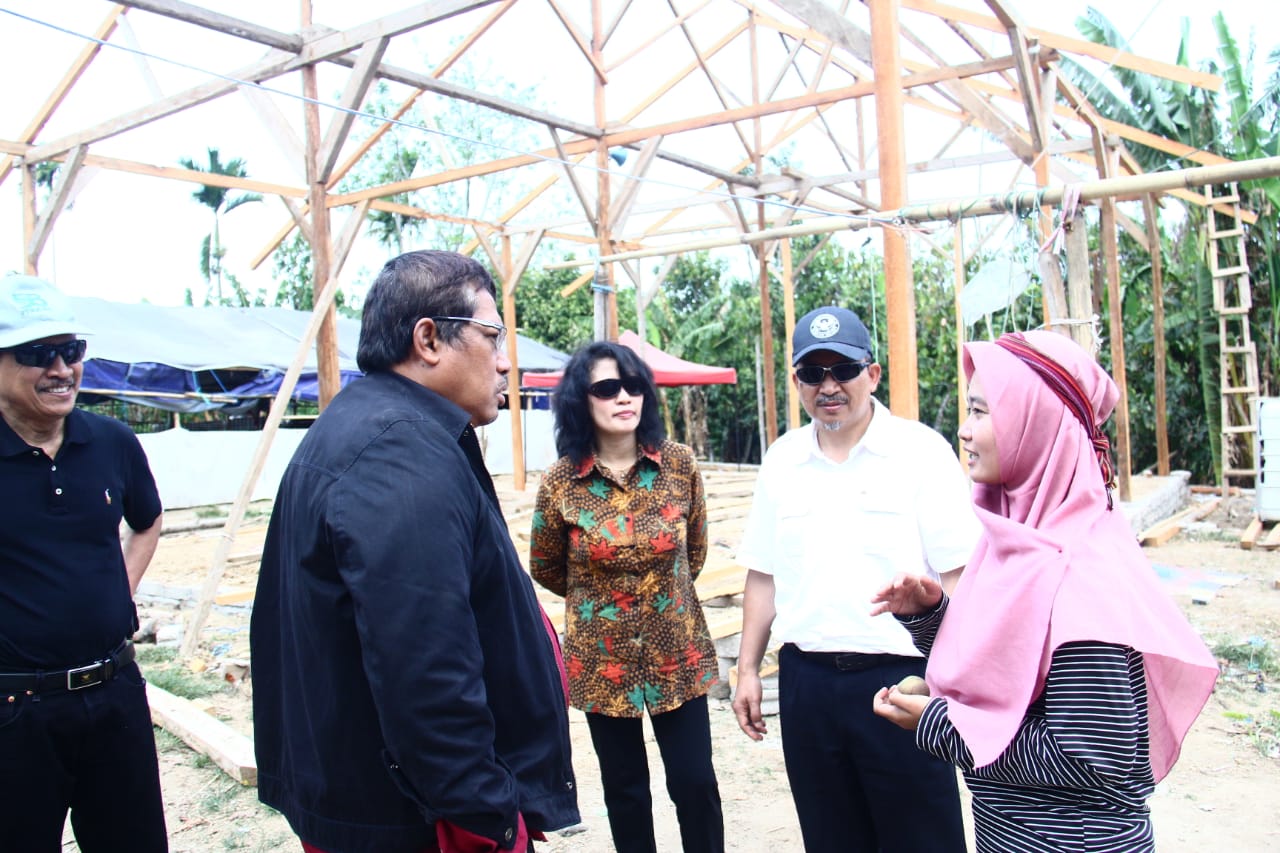 Rektor ITS Prof Joni Hermana bersama pimpinan ITS saat meninjau Huntara dan melihat reruntuhan rumah warga Desa Rempek Darussalam, Lombok Utara