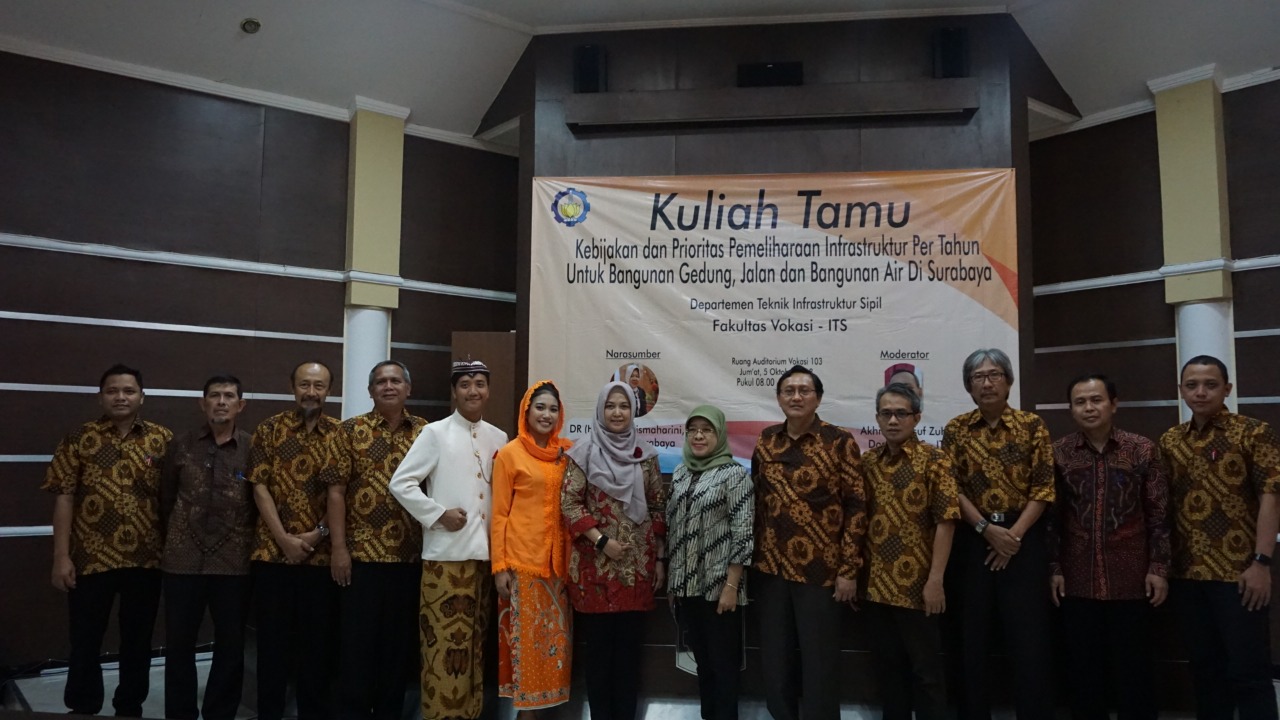 Kepala Dinas Pekerjaan Umum Kota Surabaya Ir Erna Purnawati (tengah kerudung hijau) dan para dosen Fakultas Vokasi ITS