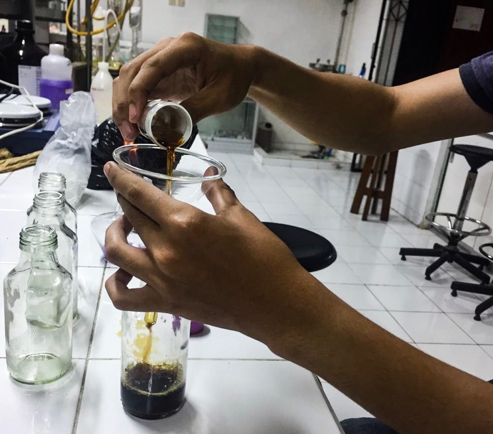 Asisten laboratorium yang dikepalai Prof Yulinah ketika melakukan komposting tanah tercemar crude oil di laboratorium Departemen Teknik Lingkungan ITS