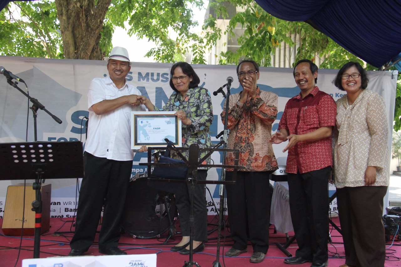 Wakil Rektor II ITS Heppy Kristijanto (berbatik) turut menyumbangkan suara dalam ITS Music Jam Session for Charity