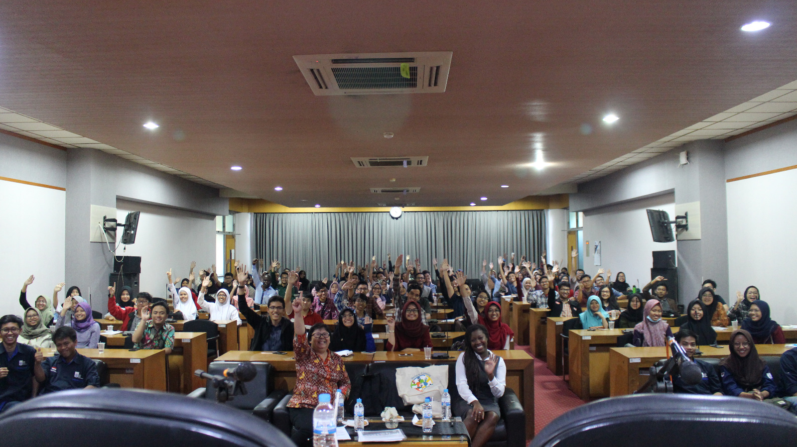 Melalui video call yang ditampilkan pada layar proyeksi, Afrizal, sapaannya, sebagai alumni Departemen Perencanaan Wilayah dan Kota ITS ini menjelaskan bahwa di masa kuliah, ia tidak hanya terfokus kepada akademik saja, namun juga non akademik khususnya di bidang sosial dan lingkungan.